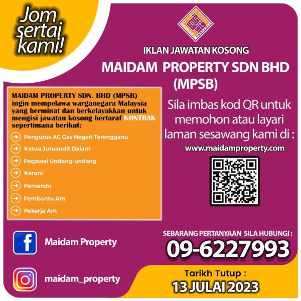 IKlan Jawatan MAIDAM Property Sdn Bhd Klik Jawatan Disini Like serta Ikut Facebook Kami, follow Chanel WhatsApp Jawatan Kosong & Telegram Portal SPA9 untuk capaian pantas kekosongan jawatan daripada kami sekarang.
