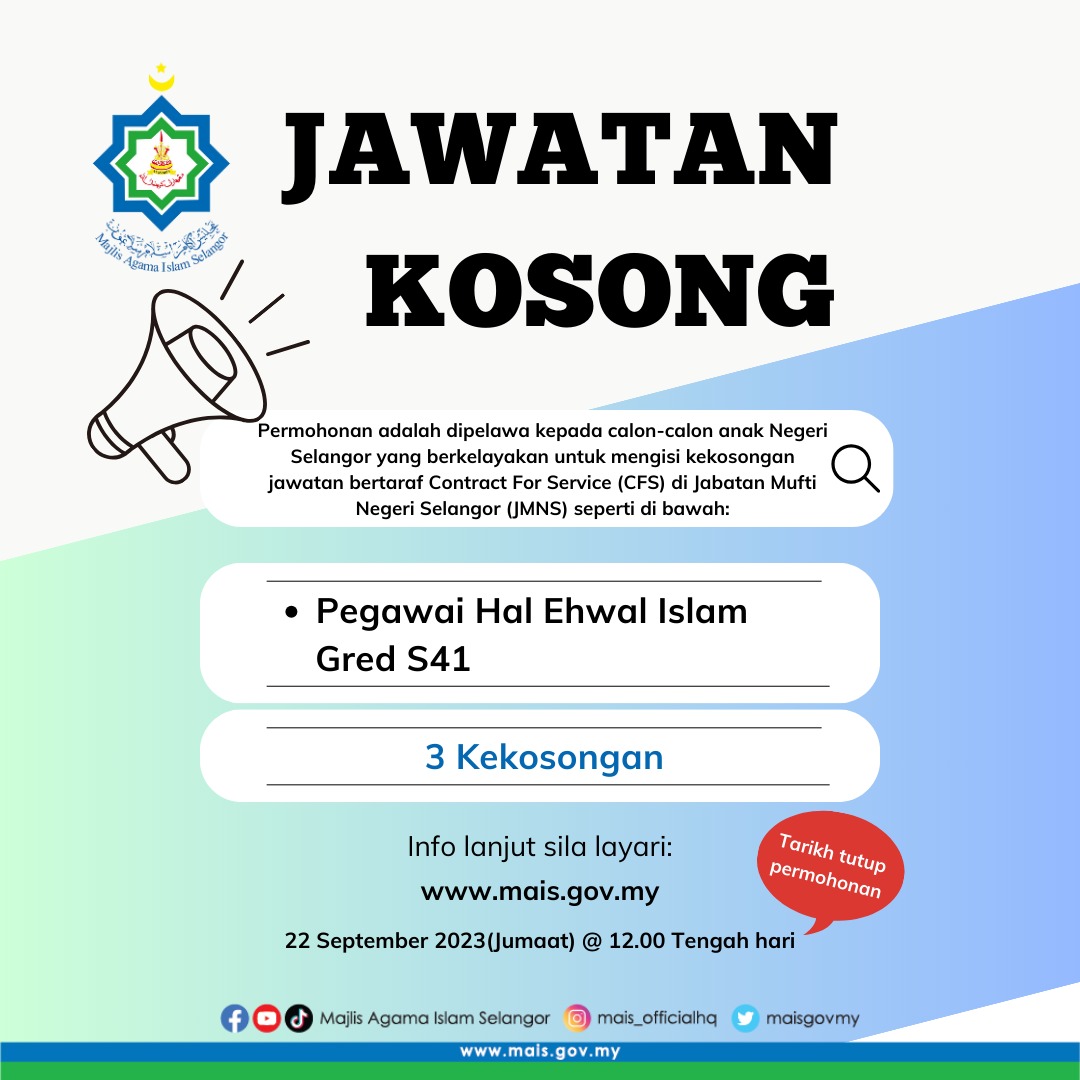 Iklan Jawatan Majlis Agama Islam Selangor (MAIS) Like serta Ikut Facebook Kami, follow Chanel WhatsApp Jawatan Kosong & Telegram Portal SPA9 untuk capaian pantas kekosongan jawatan daripada kami sekarang.