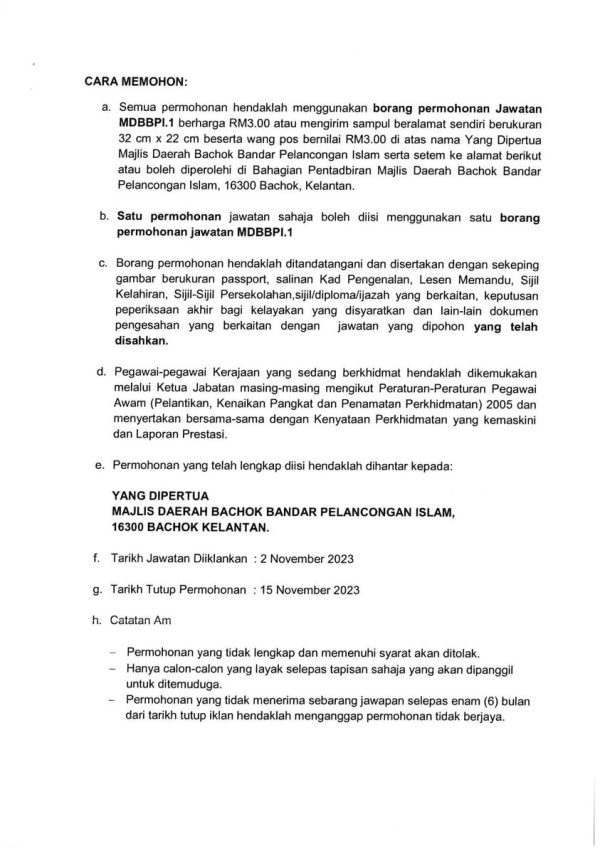 Iklan Jawatan Majlis Daerah Bachok Like serta Ikut Facebook Kami, follow Chanel WhatsApp Jawatan Kosong & Telegram Portal SPA9 untuk capaian pantas kekosongan jawatan daripada kami sekarang.