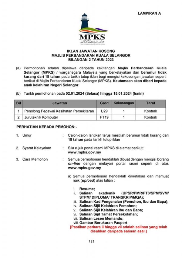 Iklan Jawatan Majlis Perbandaran Kuala Selangor (MPKS) Like serta Ikut Facebook Kami, follow Chanel WhatsApp Jawatan Kosong & Telegram Portal SPA9 untuk capaian pantas kekosongan jawatan daripada kami sekarang. Klik Jawatan Disini