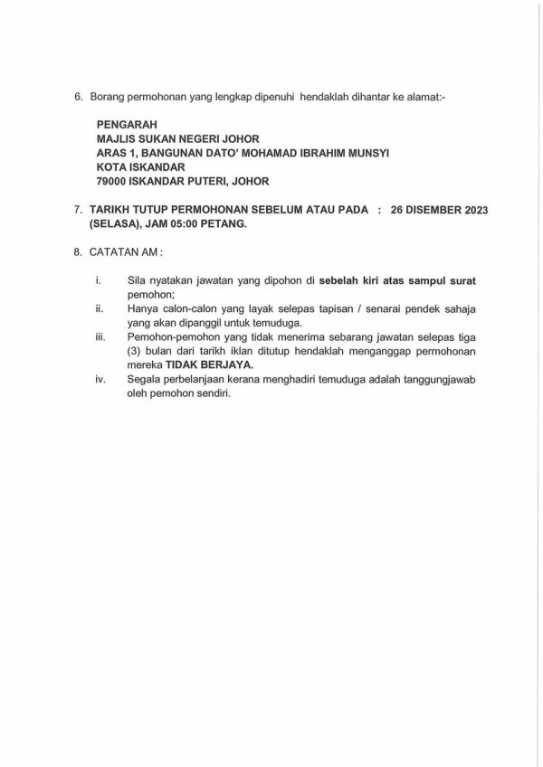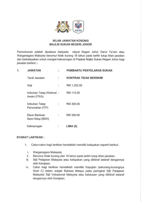 Iklan Jawatan Majlis Sukan Negeri Johor Like serta Ikut Facebook Kami, follow Chanel WhatsApp Jawatan Kosong & Telegram Portal SPA9 untuk capaian pantas kekosongan jawatan daripada kami sekarang.