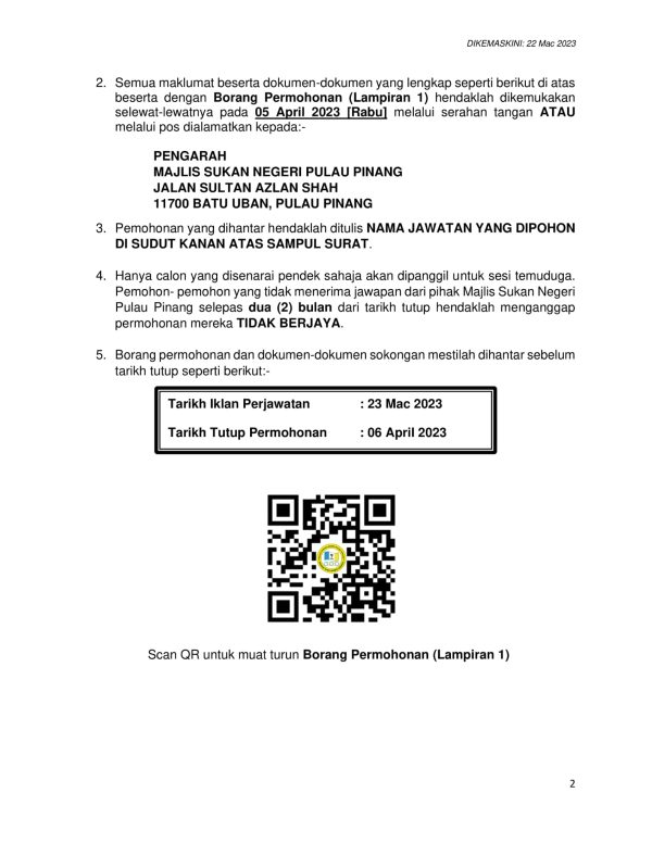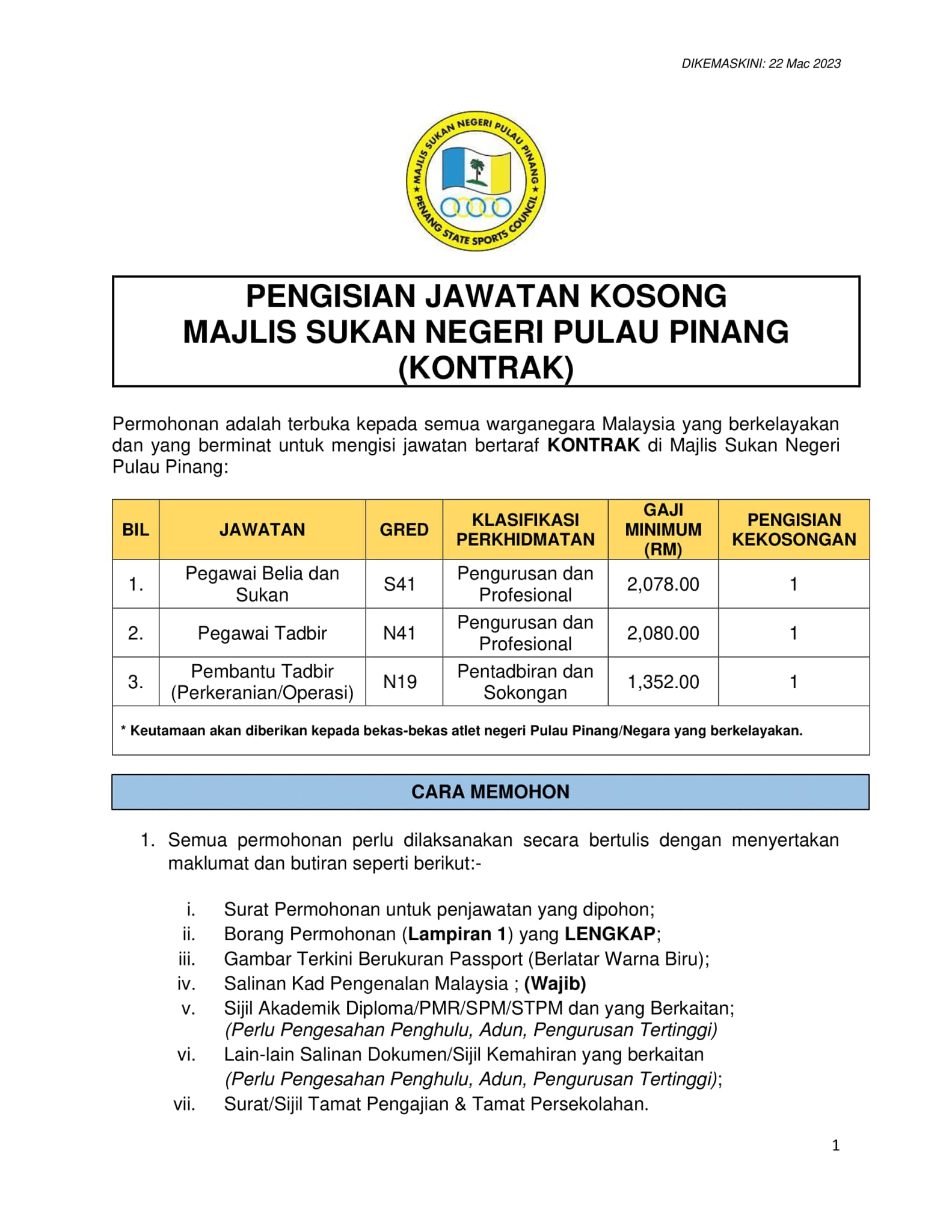 Iklan Jawatan Majlis Sukan Negeri Pulau Pinang