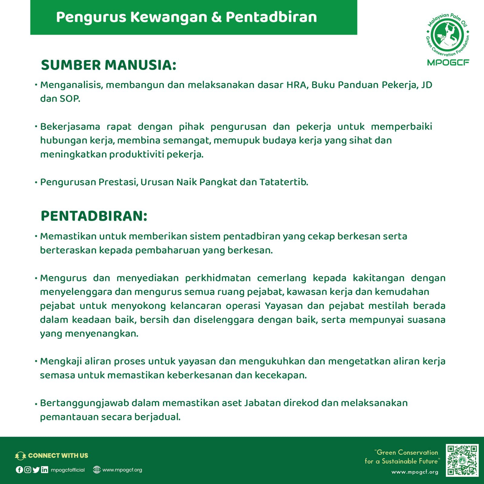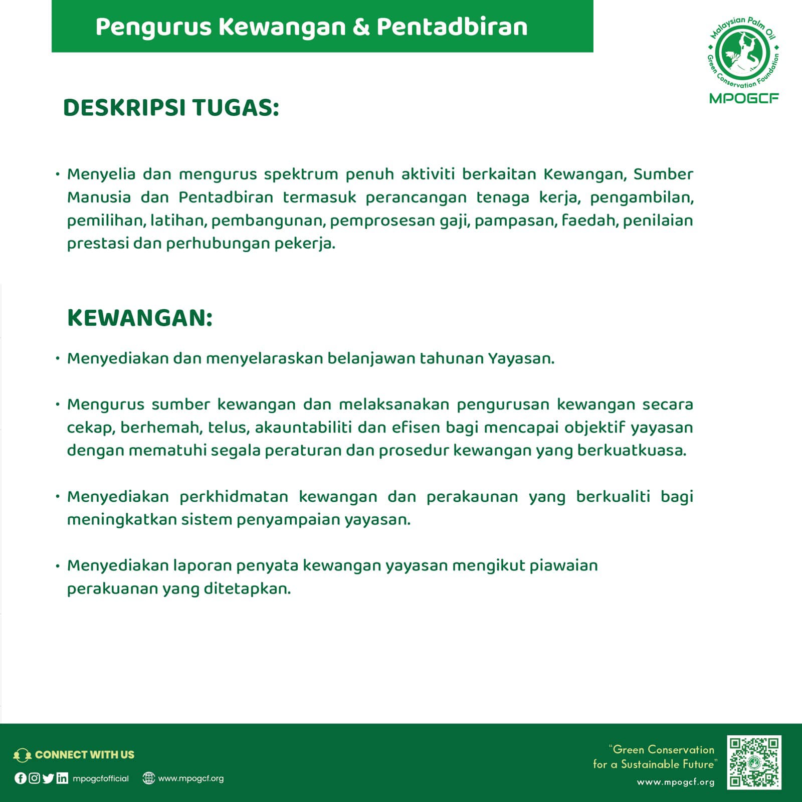 Iklan Jawatan Malaysian Palm Oil Green Conservation Foundation (MPOGCF) Like serta Ikut Facebook Kami, follow Chanel WhatsApp Jawatan Kosong & Telegram Portal SPA9 untuk capaian pantas kekosongan jawatan daripada kami sekarang.