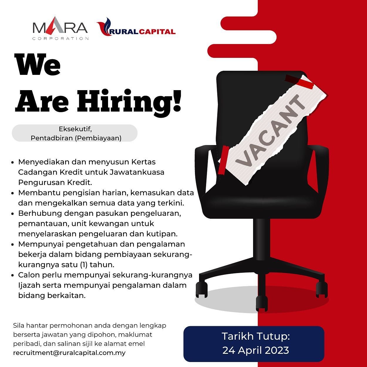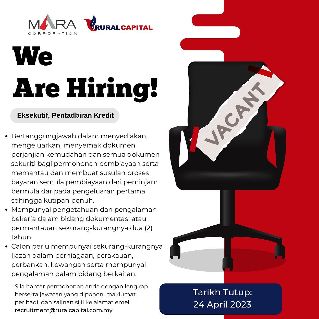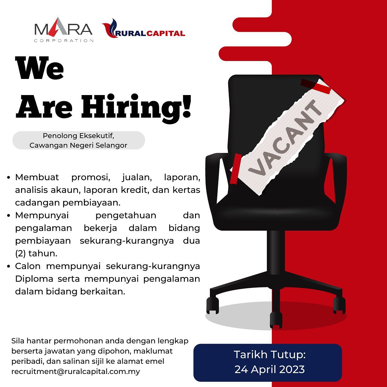 Iklan Jawatan MARA Corporation Like serta Ikut Facebook Kami, follow Chanel WhatsApp Jawatan Kosong & Telegram Portal SPA9 untuk capaian pantas kekosongan jawatan daripada kami sekarang.
