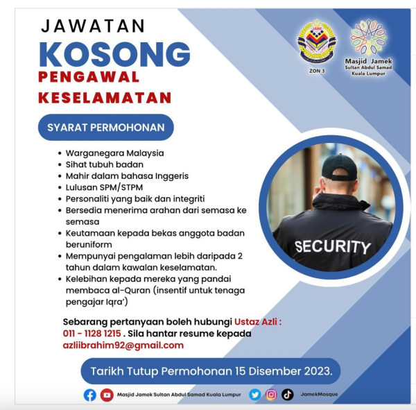 Iklan Jawatan Masjid Jamek Sultan Abdul Samad Kuala Lumpur Like serta Ikut Facebook Kami, follow Chanel WhatsApp Jawatan Kosong & Telegram Portal SPA9 untuk capaian pantas kekosongan jawatan daripada kami sekarang.