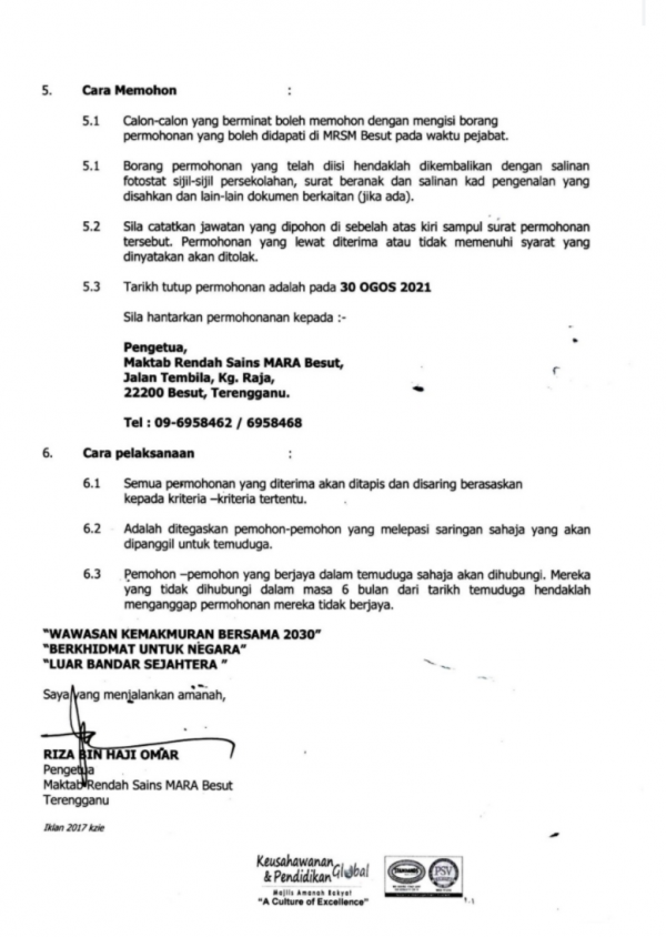 Iklan Jawatan MRSM Besut Like serta Ikut Facebook Kami, follow Chanel WhatsApp Jawatan Kosong & Telegram Portal SPA9 untuk capaian pantas kekosongan jawatan daripada kami sekarang.