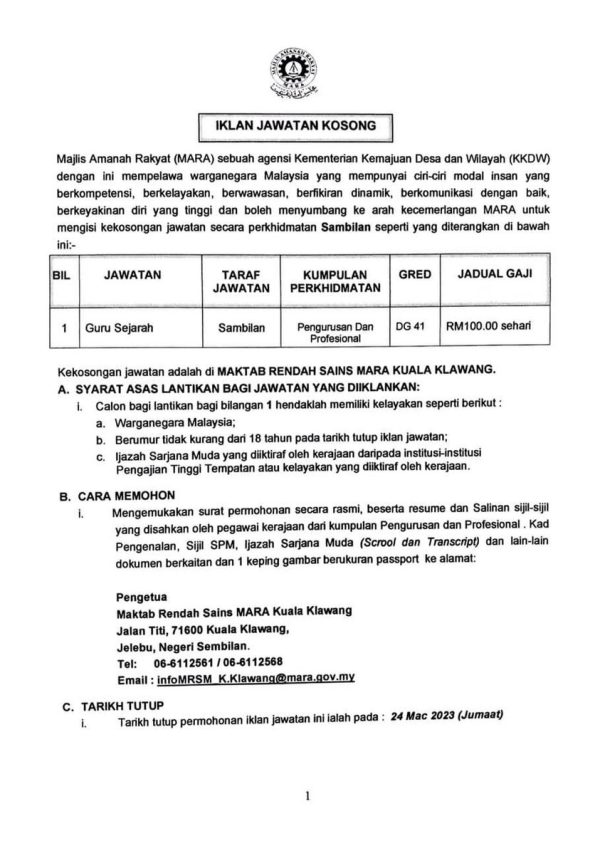 Iklan Jawatan Mrsm Kuala Klawang Like serta Ikut Facebook Kami, follow Chanel WhatsApp Jawatan Kosong & Telegram Portal SPA9 untuk capaian pantas kekosongan jawatan daripada kami sekarang.