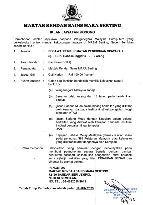 Iklan Jawatan MRSM Serting Like serta Ikut Facebook Kami, follow Chanel WhatsApp Jawatan Kosong & Telegram Portal SPA9 untuk capaian pantas kekosongan jawatan daripada kami sekarang.