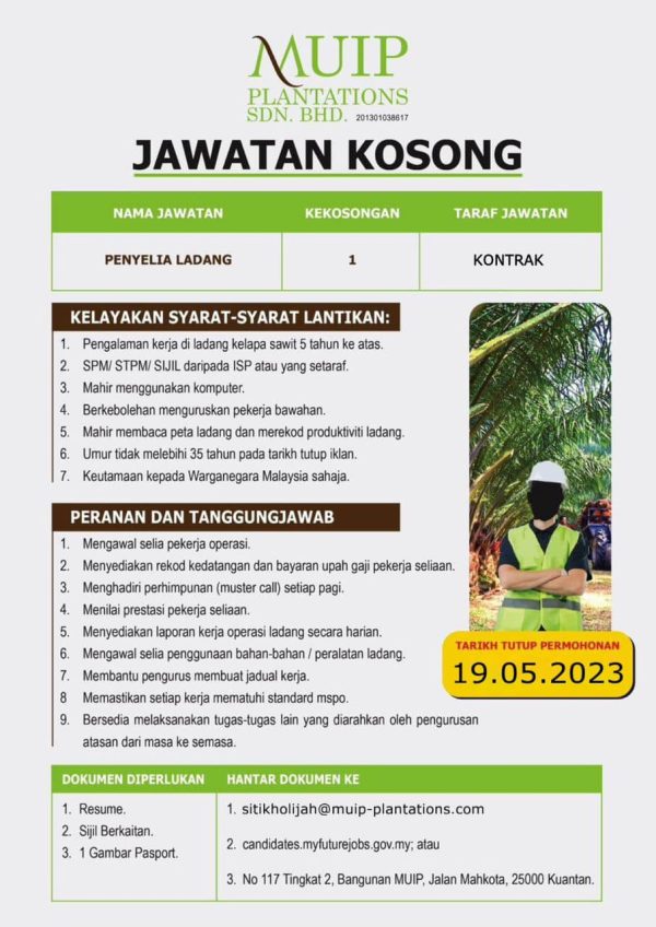 Iklan Jawatan MUIP Plantations Sdn Bhd Like serta Ikut Facebook Kami, follow Chanel WhatsApp Jawatan Kosong & Telegram Portal SPA9 untuk capaian pantas kekosongan jawatan daripada kami sekarang.