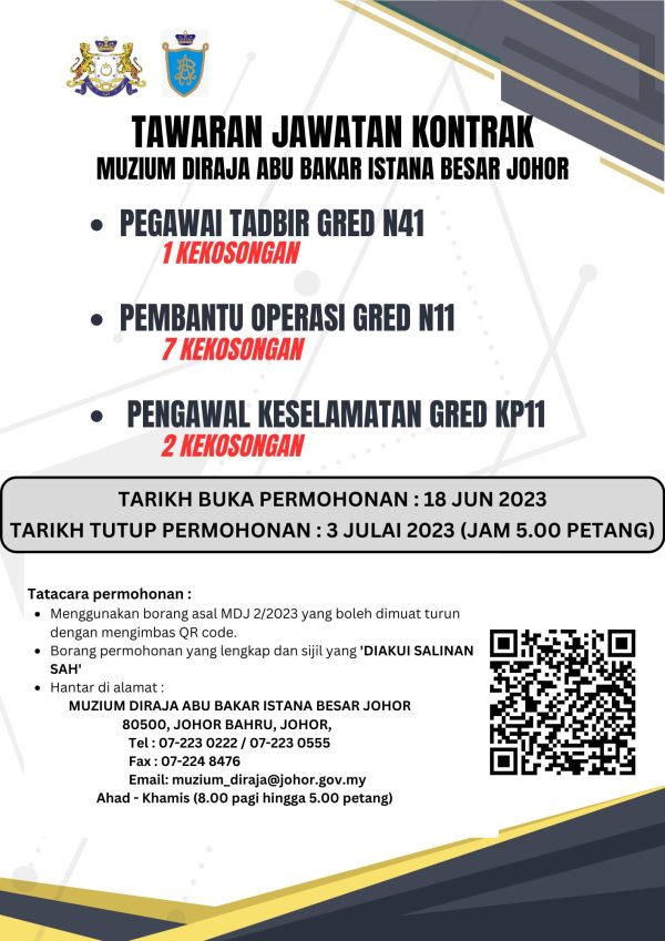 Iklan Jawatan Muzium DiRaja Abu Bakar Istana Besar Johor Like serta Ikut Facebook Kami, follow Chanel WhatsApp Jawatan Kosong & Telegram Portal SPA9 untuk capaian pantas kekosongan jawatan daripada kami sekarang.