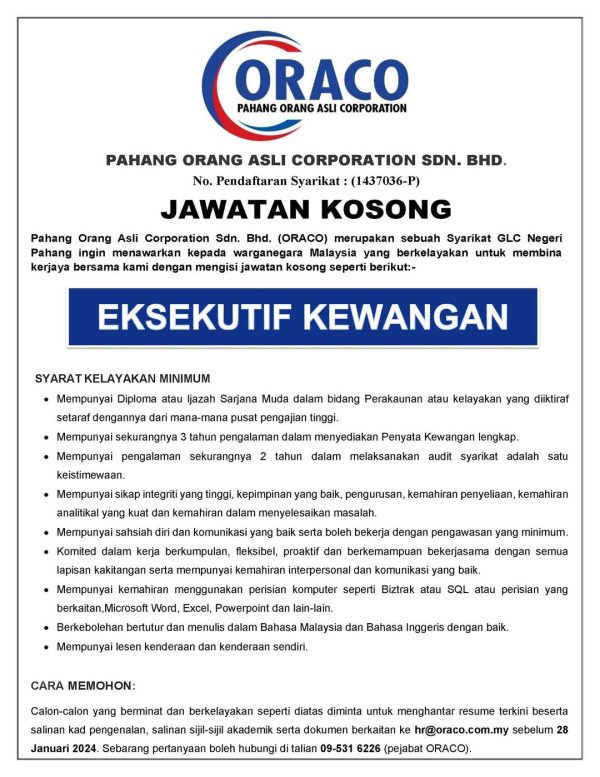 Iklan Jawatan Pahang Orang Asli Corporation Like serta Ikut Facebook Kami, follow Chanel WhatsApp Jawatan Kosong & Telegram Portal SPA9 untuk capaian pantas kekosongan jawatan daripada kami sekarang.