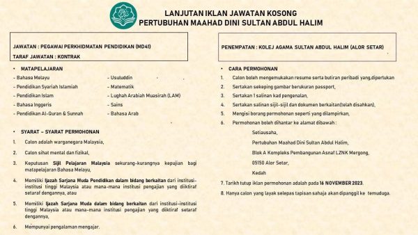 Iklan Jawatan Pegawai Perkhidmatan Pendidikan (MD 41) Like serta Ikut Facebook Kami, follow Chanel WhatsApp Jawatan Kosong & Telegram Portal SPA9 untuk capaian pantas kekosongan jawatan daripada kami sekarang.