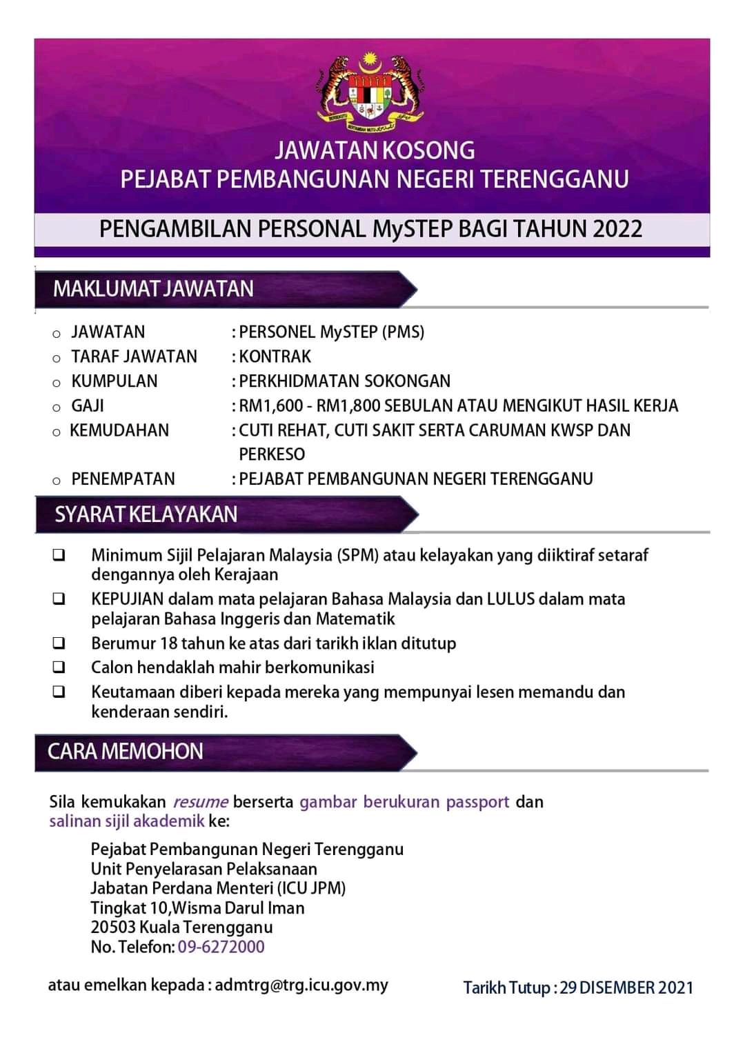 Iklan Jawatan Pejabat Pembangunan Negeri Terengganu Like serta Ikut Facebook Kami, follow Chanel WhatsApp Jawatan Kosong & Telegram Portal SPA9 untuk capaian pantas kekosongan jawatan daripada kami sekarang.
