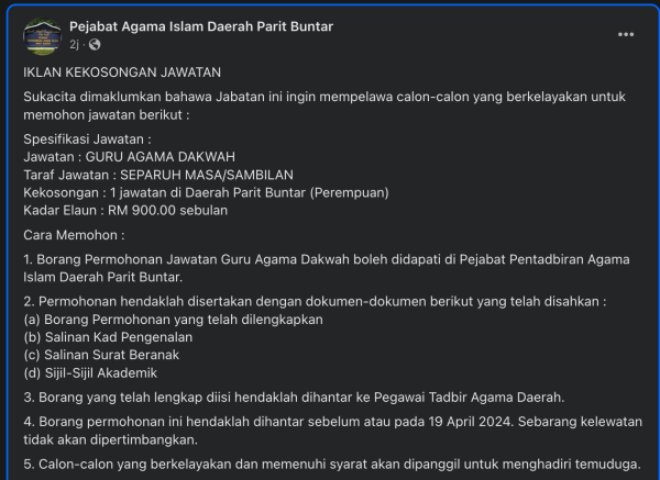 Iklan Jawatan Pejabat Agama Islam Daerah Parit Buntar Like serta Ikut Facebook Kami, follow Chanel WhatsApp Jawatan Kosong & Telegram Portal SPA9 untuk capaian pantas kekosongan jawatan daripada kami sekarang.