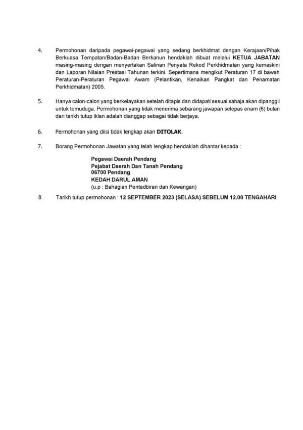 Iklan Jawatan Pejabat Daerah Dan Tanah Pendang Like serta Ikut Facebook Kami, follow Chanel WhatsApp Jawatan Kosong & Telegram Portal SPA9 untuk capaian pantas kekosongan jawatan daripada kami sekarang.