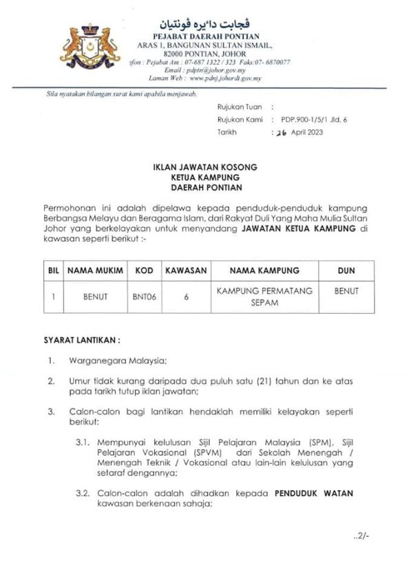 Iklan Jawatan Pejabat Daerah Pontian Like serta Ikut Facebook Kami, follow Chanel WhatsApp Jawatan Kosong & Telegram Portal SPA9 untuk capaian pantas kekosongan jawatan daripada kami sekarang.