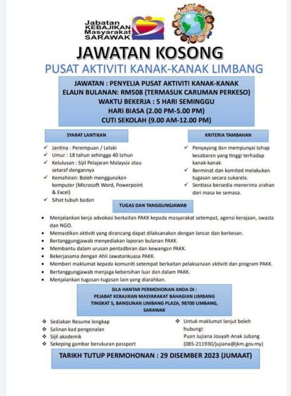 Iklan Jawatan Pejabat Kebajikan Masyarakat Bahagian Limbang Like serta Ikut Facebook Kami, follow Chanel WhatsApp Jawatan Kosong & Telegram Portal SPA9 untuk capaian pantas kekosongan jawatan daripada kami sekarang.