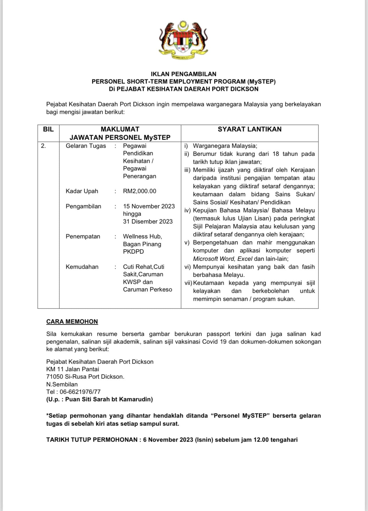 Iklan Jawatan Pejabat Kesihatan Port Dickson ~ Mystep Like serta Ikut Facebook Kami, follow Chanel WhatsApp Jawatan Kosong & Telegram Portal SPA9 untuk capaian pantas kekosongan jawatan daripada kami sekarang.