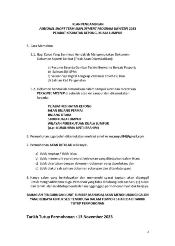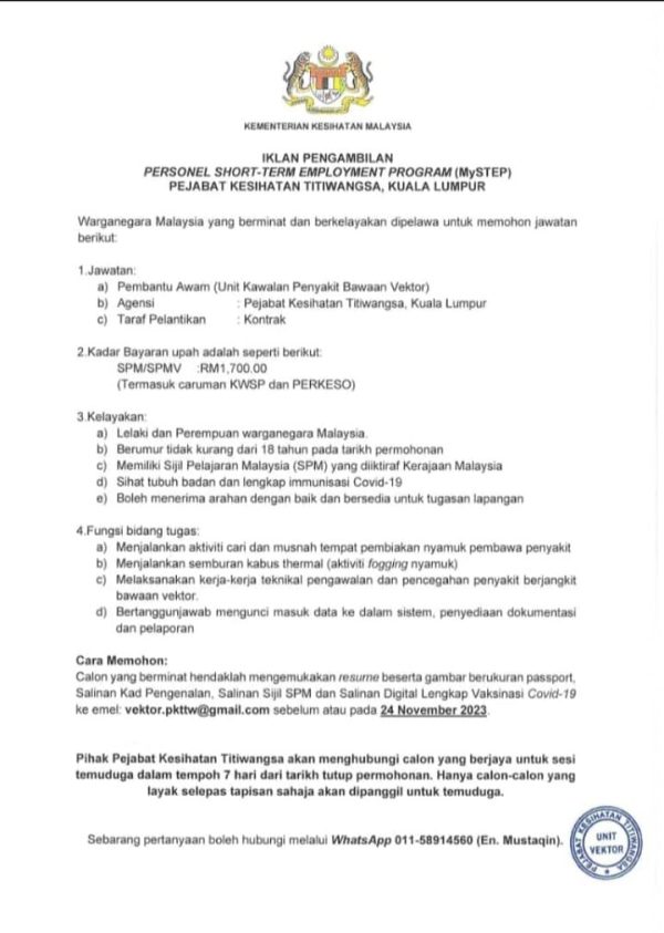 Iklan Jawatan Pejabat Kesihatan Titiwangsa dan Kepong Like serta Ikut Facebook Kami, follow Chanel WhatsApp Jawatan Kosong & Telegram Portal SPA9 untuk capaian pantas kekosongan jawatan daripada kami sekarang.