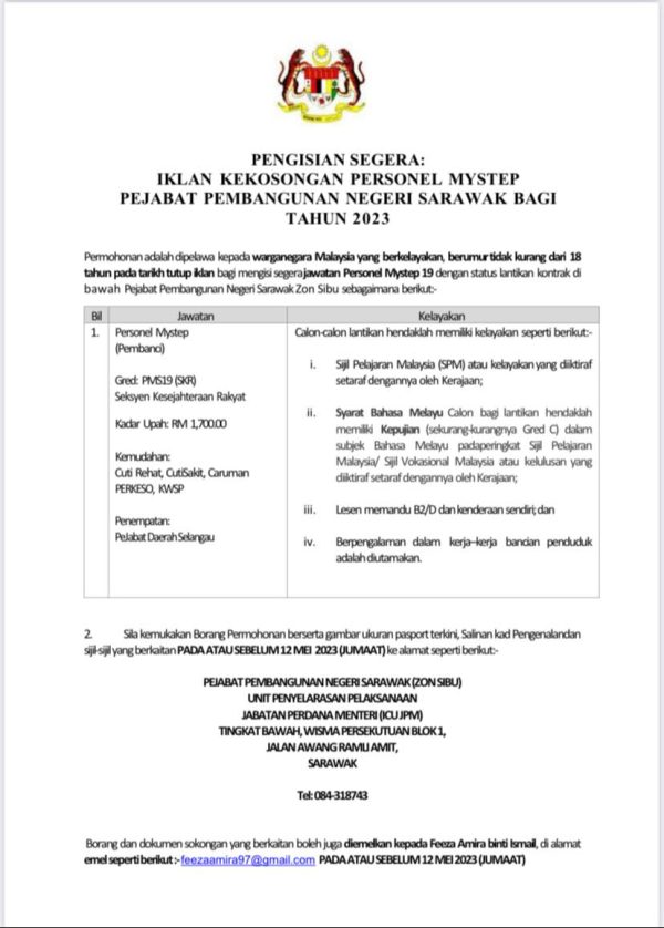 Iklan Jawatan Pejabat Pembangunan Negeri Sarawak Like serta Ikut Facebook Kami, follow Chanel WhatsApp Jawatan Kosong & Telegram Portal SPA9 untuk capaian pantas kekosongan jawatan daripada kami sekarang.