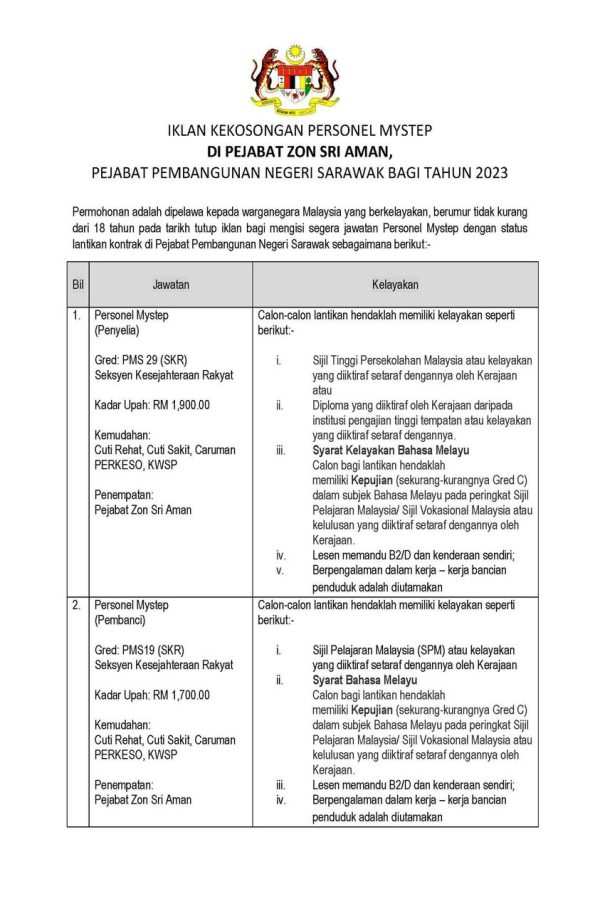 Iklan Jawatan Pejabat Pembangunan Negeri Sarawak Like serta Ikut Facebook Kami, follow Chanel WhatsApp Jawatan Kosong & Telegram Portal SPA9 untuk capaian pantas kekosongan jawatan daripada kami sekarang.