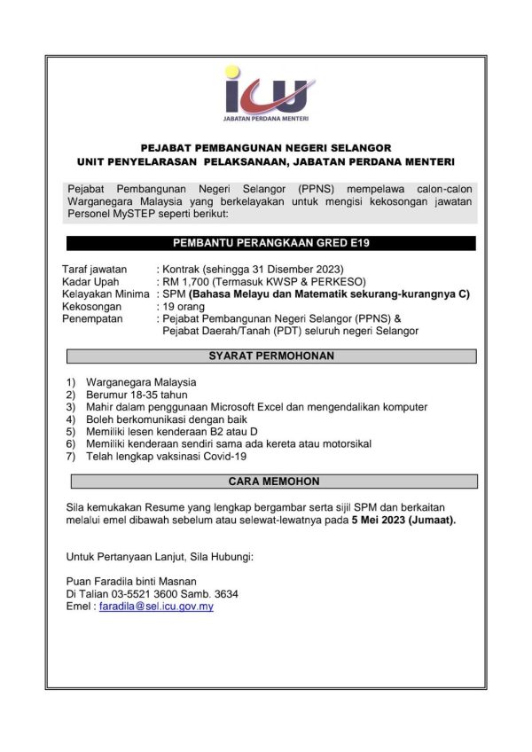 Iklan Jawatan Pejabat Pembangunan Negeri Selangor Like serta Ikut Facebook Kami, follow Chanel WhatsApp Jawatan Kosong & Telegram Portal SPA9 untuk capaian pantas kekosongan jawatan daripada kami sekarang.