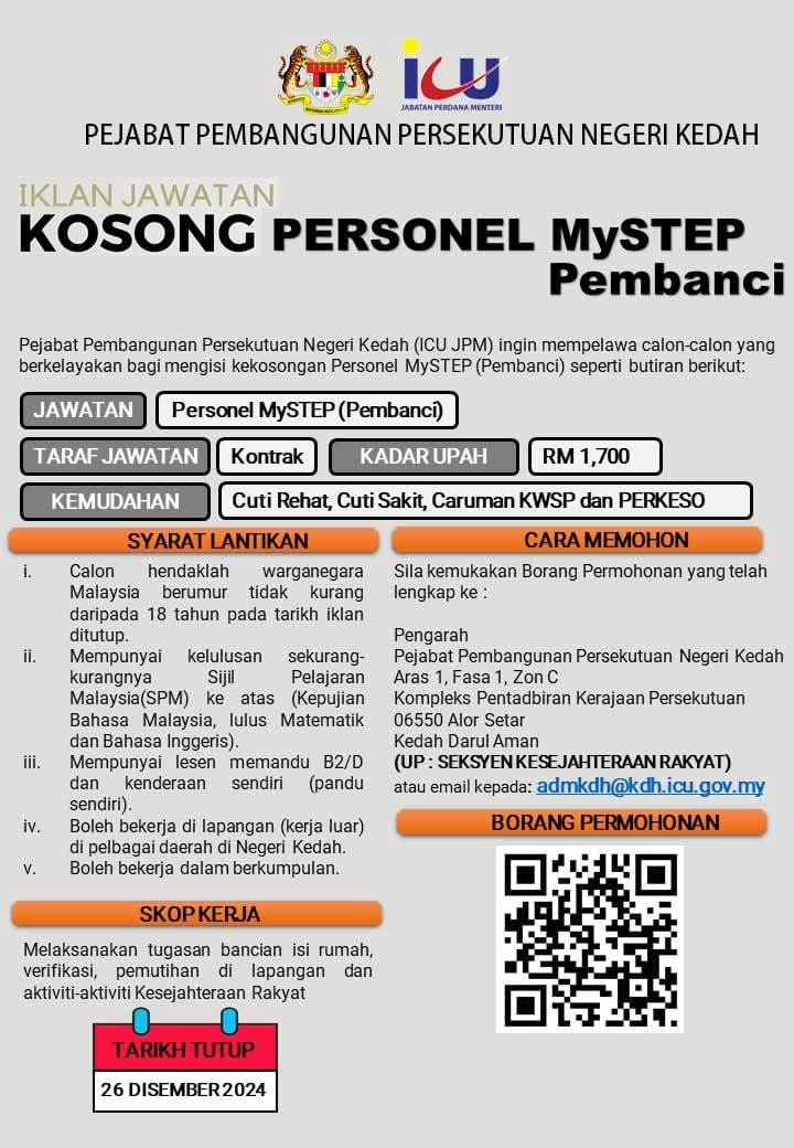 Iklan Jawatan Pejabat Pembangunan Persekutuan Negeri Kedah Like serta Ikut Facebook Kami, follow Chanel WhatsApp Jawatan Kosong & Telegram Portal SPA9 untuk capaian pantas kekosongan jawatan daripada kami sekarang.
