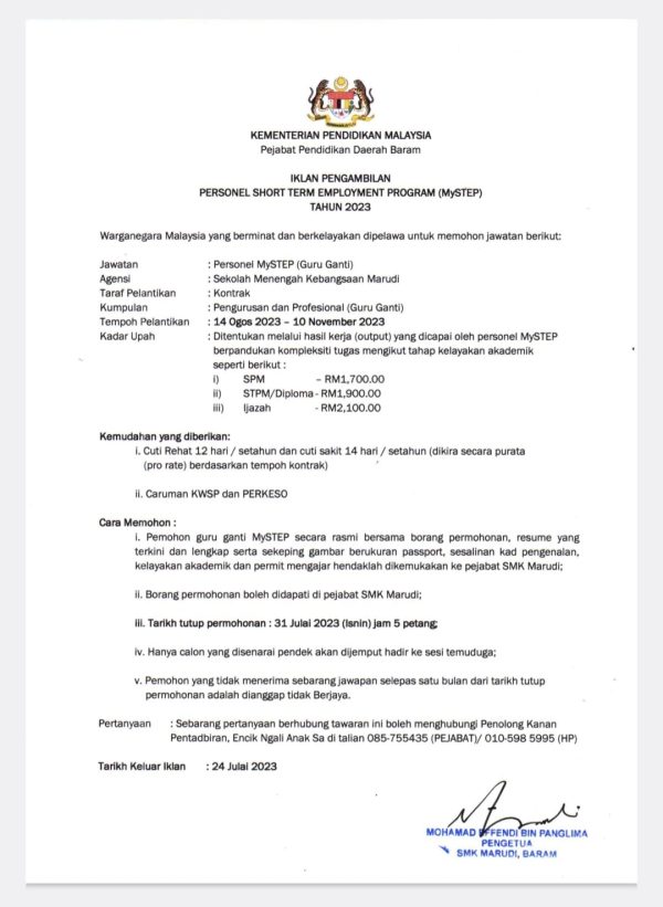 Iklan Jawatan Pejabat Pendidikan Daerah Baram Like serta Ikut Facebook Kami, follow Chanel WhatsApp Jawatan Kosong & Telegram Portal SPA9 untuk capaian pantas kekosongan jawatan daripada kami sekarang.