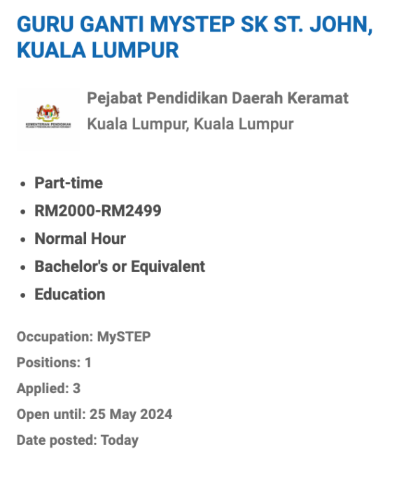 Iklan Jawatan Pejabat Pendidikan Daerah Keramat