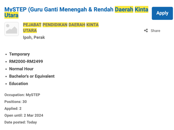 Iklan Jawatan Pejabat Pendidikan Daerah Kinta Utara Like serta Ikut Facebook Kami, follow Chanel WhatsApp Jawatan Kosong & Telegram Portal SPA9 untuk capaian pantas kekosongan jawatan daripada kami sekarang.