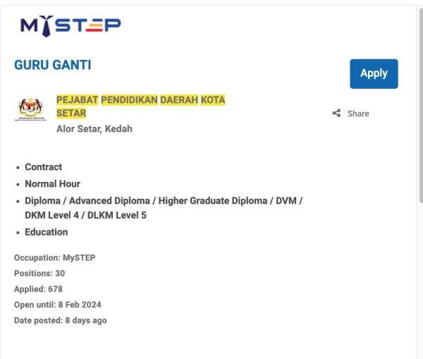 Iklan Jawatan Pejabat Pendidikan Daerah Kota Setar Like serta Ikut Facebook Kami, follow Chanel WhatsApp Jawatan Kosong & Telegram Portal SPA9 untuk capaian pantas kekosongan jawatan daripada kami sekarang.
