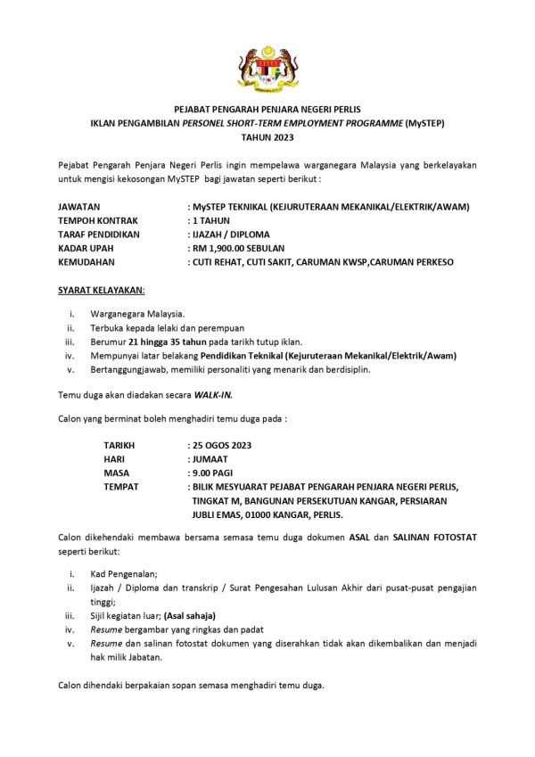 Iklan Jawatan Pejabat Pengarah Penjara Negeri Perlis Like serta Ikut Facebook Kami, follow Chanel WhatsApp Jawatan Kosong & Telegram Portal SPA9 untuk capaian pantas kekosongan jawatan daripada kami sekarang.
