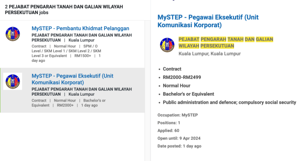 Iklan Jawatan Pejabat Pengarah Tanah Dan Galian Wilayah Persekutuan