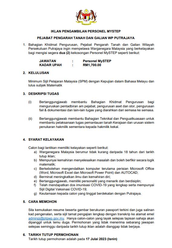 Iklan Jawatan Pejabat Pengarah Tanah Dan Galian Wilayah Persekutuan Putrajaya Like serta Ikut Facebook Kami, follow Chanel WhatsApp Jawatan Kosong & Telegram Portal SPA9 untuk capaian pantas kekosongan jawatan daripada kami sekarang.