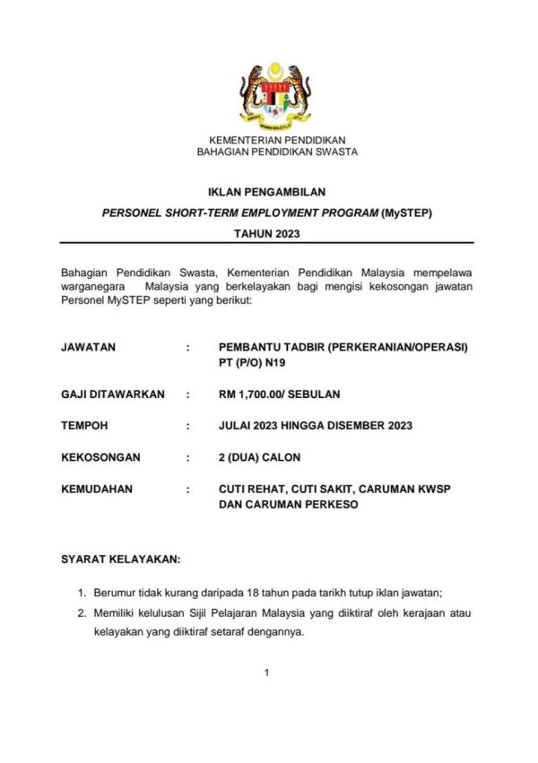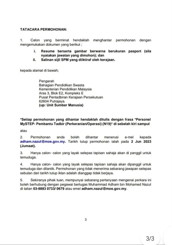 Iklan Jawatan Pembantu Tadbir (P/O) KPM Like serta Ikut Facebook Kami, follow Chanel WhatsApp Jawatan Kosong & Telegram Portal SPA9 untuk capaian pantas kekosongan jawatan daripada kami sekarang.