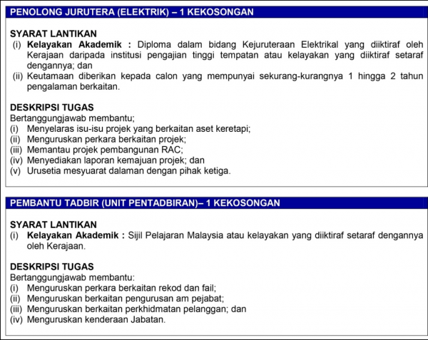 Iklan Jawatan Pembantu Tadbir Perbadanan Aset Keretapi (RAC) Like serta Ikut Facebook Kami, follow Chanel WhatsApp Jawatan Kosong & Telegram Portal SPA9 untuk capaian pantas kekosongan jawatan daripada kami sekarang.