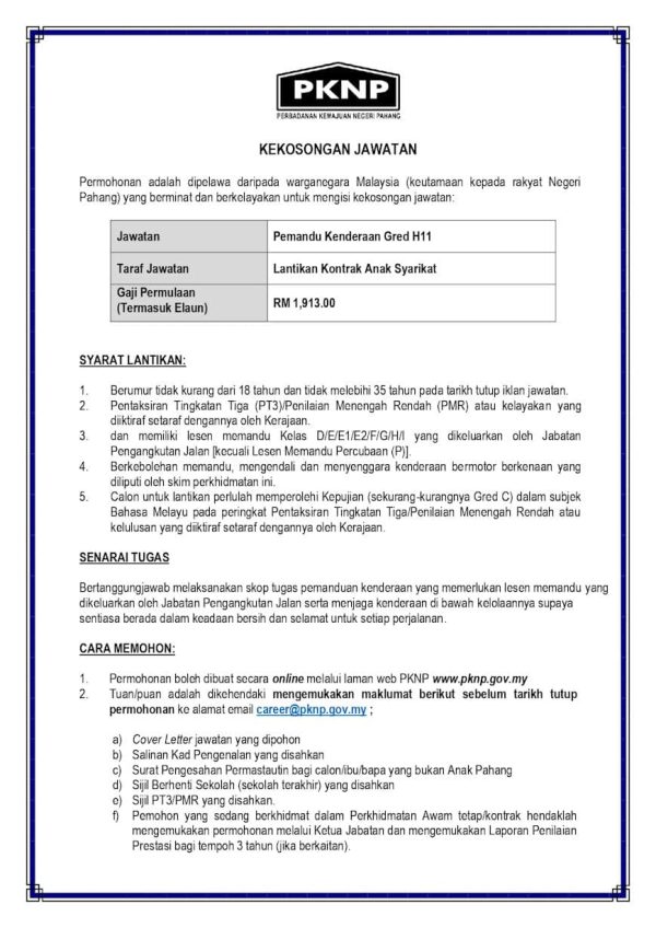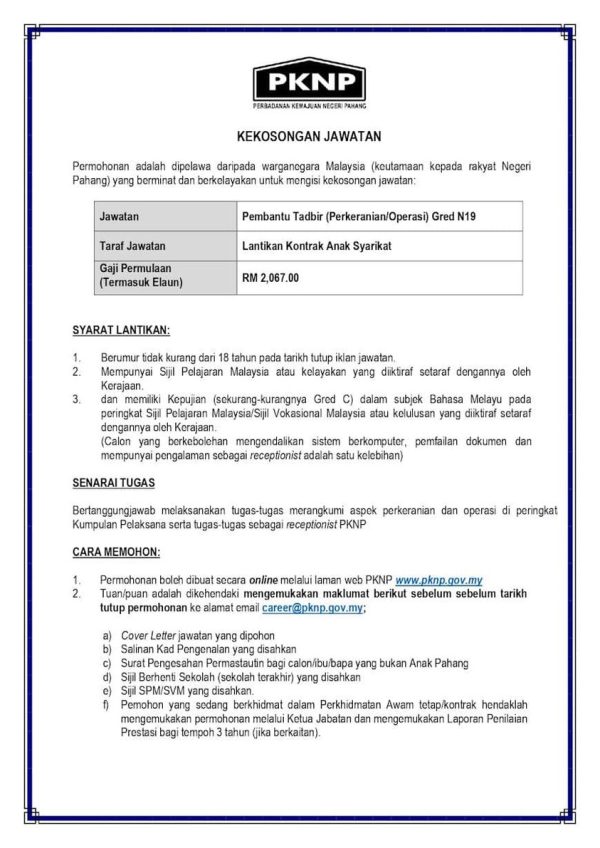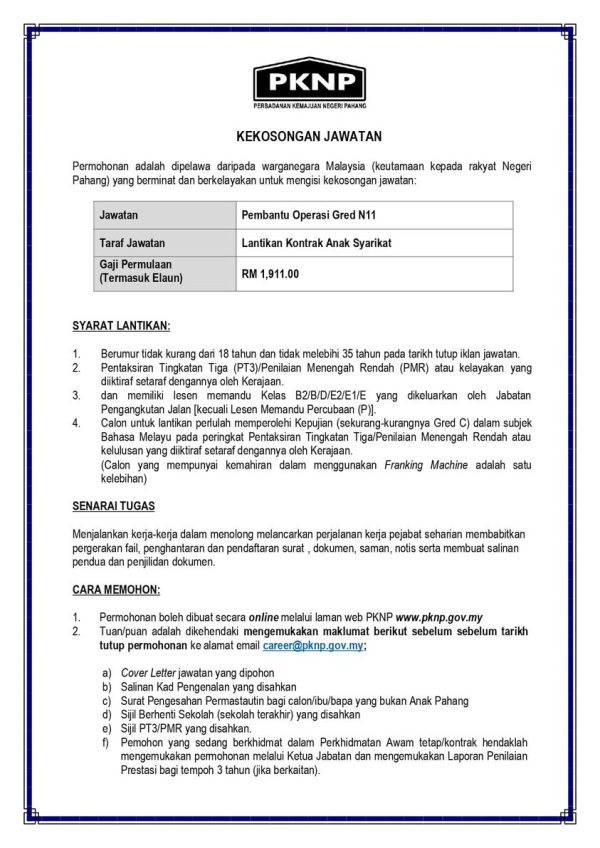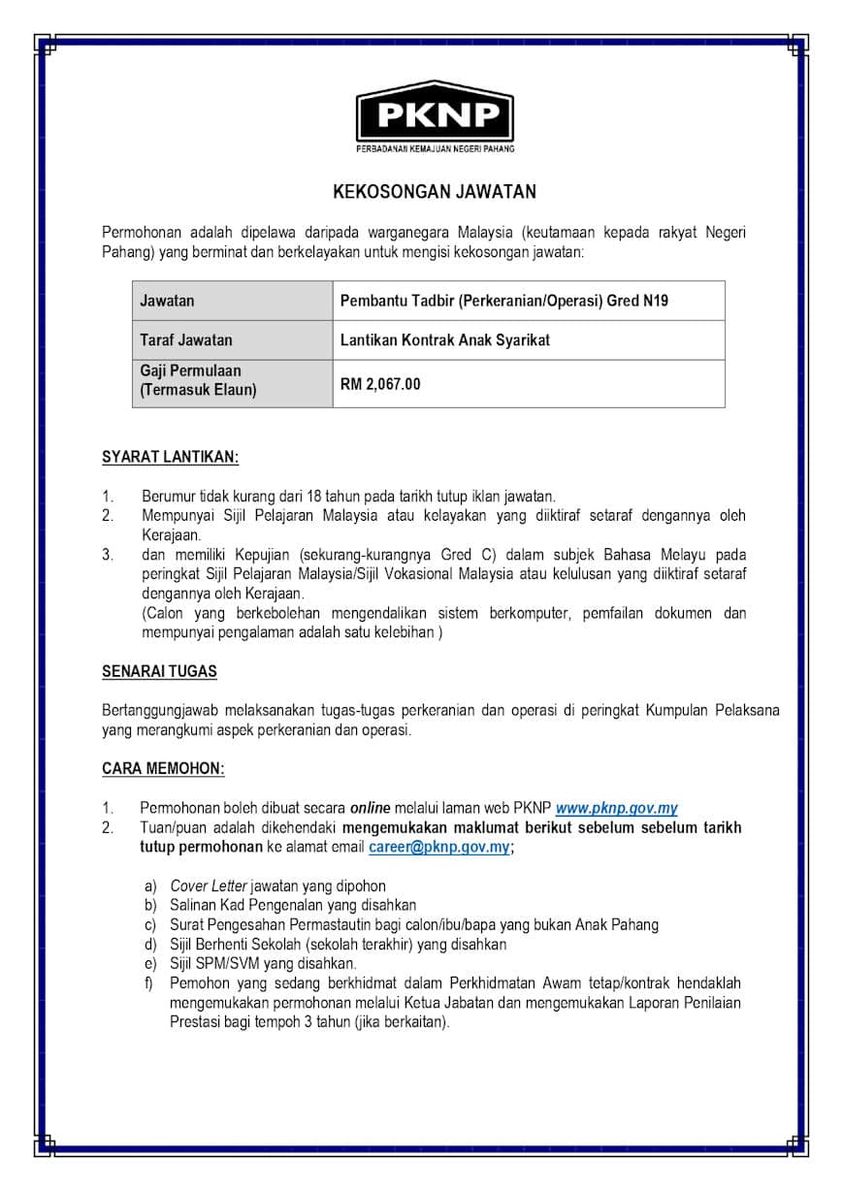 Iklan Jawatan Perbadanan Kemajuan Negeri Pahang Like serta Ikut Facebook Kami, follow Chanel WhatsApp Jawatan Kosong & Telegram Portal SPA9 untuk capaian pantas kekosongan jawatan daripada kami sekarang. Klik Jawatan Disini