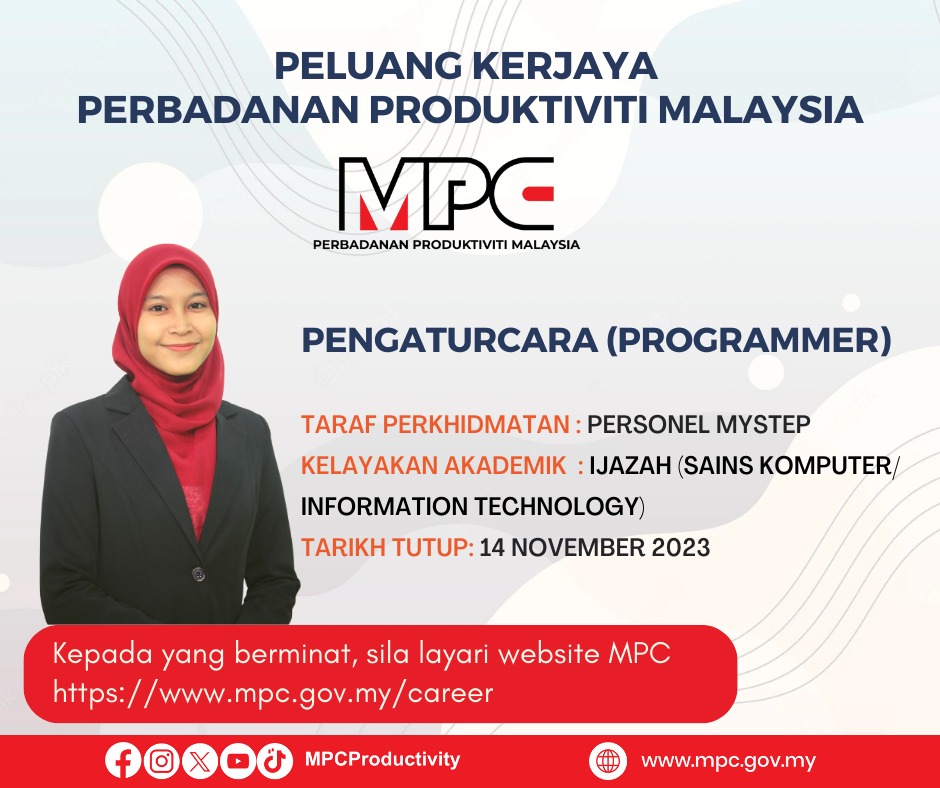 Iklan Jawatan Perbadanan Produktiviti Malaysia (MPC) Like serta Ikut Facebook Kami, follow Chanel WhatsApp Jawatan Kosong & Telegram Portal SPA9 untuk capaian pantas kekosongan jawatan daripada kami sekarang.