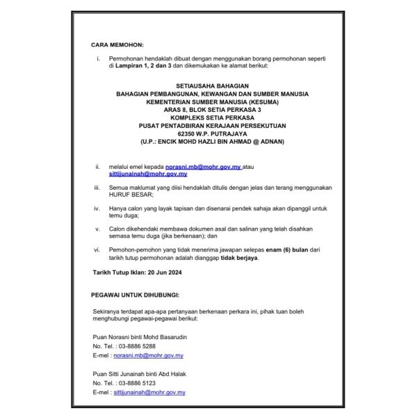 - Tarikh Tutup Permohonan: 20 Jun 2024