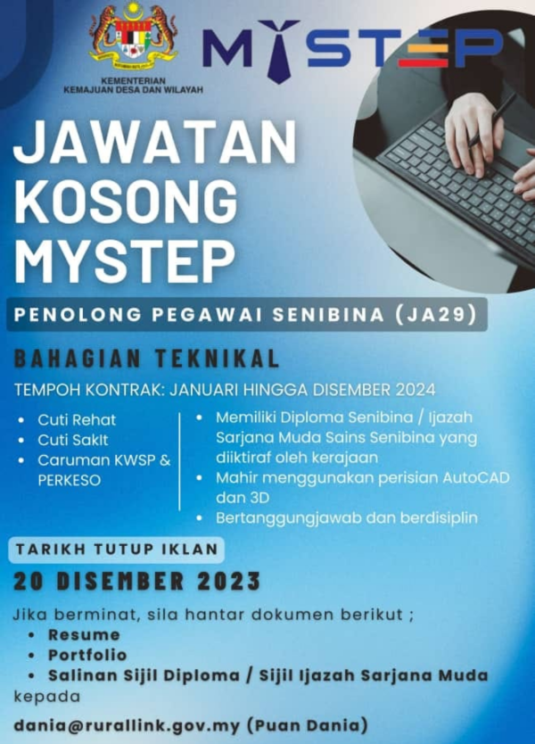 Iklan Jawatan Personel MySTEP Kementerian Kemajuan Desa Dan Wilayah Like serta Ikut Facebook Kami, follow Chanel WhatsApp Jawatan Kosong & Telegram Portal SPA9 untuk capaian pantas kekosongan jawatan daripada kami sekarang.