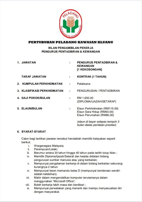 Iklan Jawatan Pertubuhan Peladang Kawasan Kluang Like serta Ikut Facebook Kami, follow Chanel WhatsApp Jawatan Kosong & Telegram Portal SPA9 untuk capaian pantas kekosongan jawatan daripada kami sekarang.