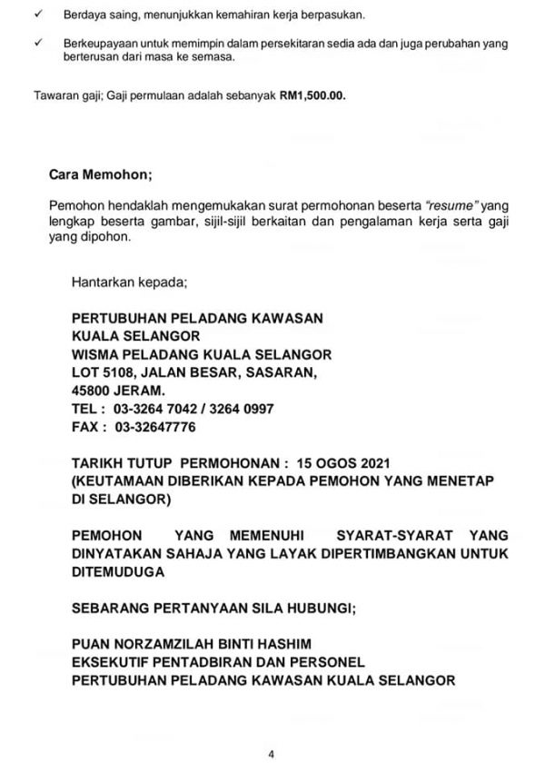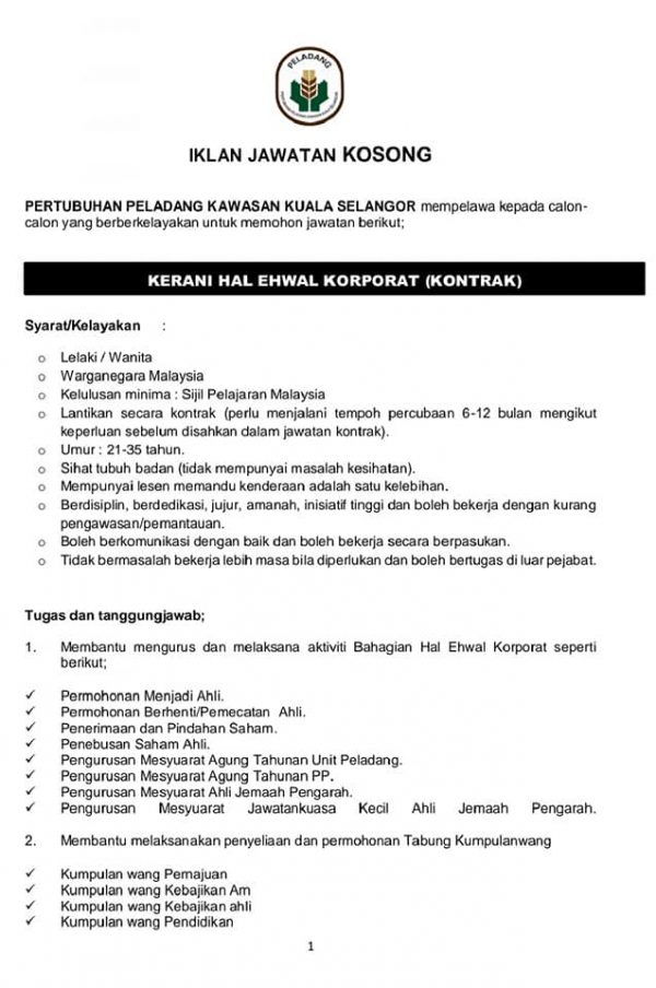 Iklan Jawatan Pertubuhan Peladang Kawasan Kuala Selangor Like serta Ikut Facebook Kami, follow Chanel WhatsApp Jawatan Kosong & Telegram Portal SPA9 untuk capaian pantas kekosongan jawatan daripada kami sekarang.