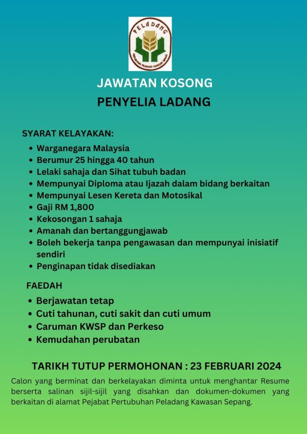 Iklan Jawatan Pertubuhan Peladang Kawasan Sepang Like serta Ikut Facebook Kami, follow Chanel WhatsApp Jawatan Kosong & Telegram Portal SPA9 untuk capaian pantas kekosongan jawatan daripada kami sekarang.