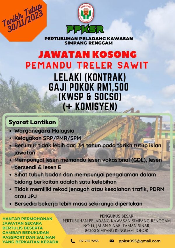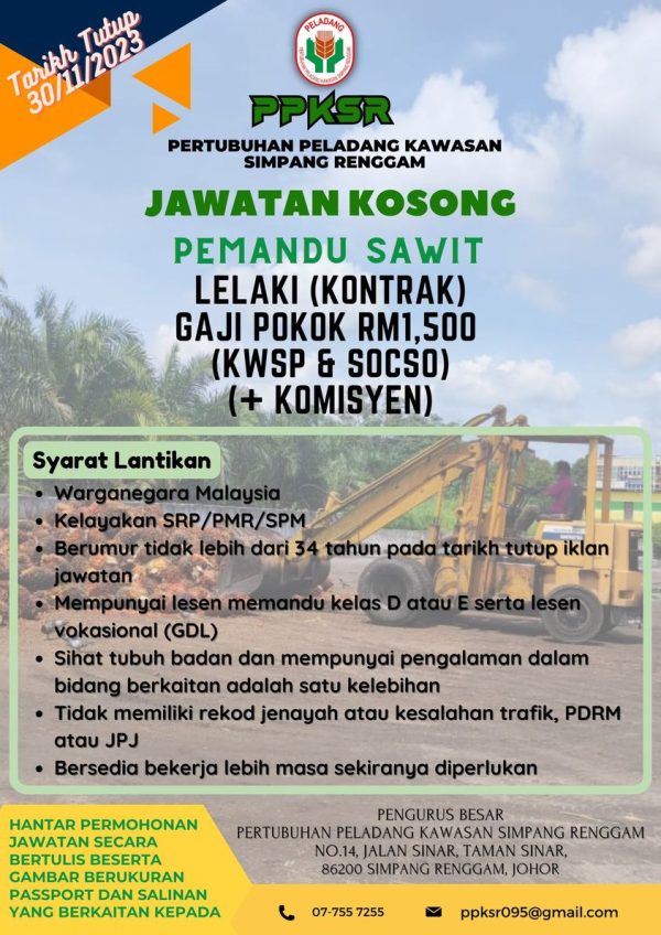 Iklan Jawatan Pertubuhan Peladang Kawasan Simpang Renggam Like serta Ikut Facebook Kami, follow Chanel WhatsApp Jawatan Kosong & Telegram Portal SPA9 untuk capaian pantas kekosongan jawatan daripada kami sekarang.