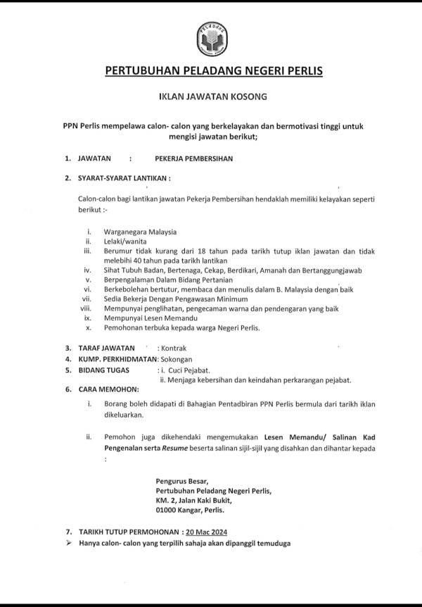 Iklan Jawatan Pertubuhan Peladang Negeri Perlis Like serta Ikut Facebook Kami, follow Chanel WhatsApp Jawatan Kosong & Telegram Portal SPA9 untuk capaian pantas kekosongan jawatan daripada kami sekarang.