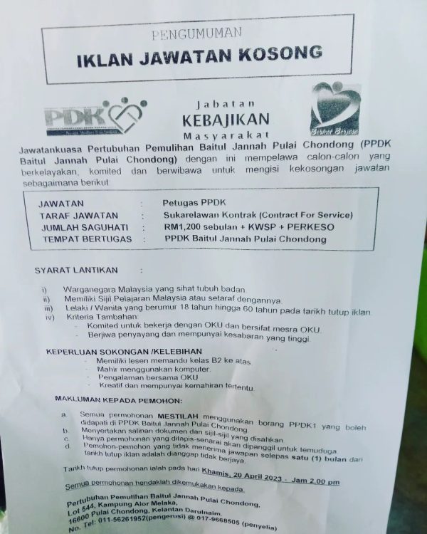 iklan Jawatan Pertubuhan Pemulihan Dalam Komuniti (PPDK) Like serta Ikut Facebook Kami, follow Chanel WhatsApp Jawatan Kosong & Telegram Portal SPA9 untuk capaian pantas kekosongan jawatan daripada kami sekarang.