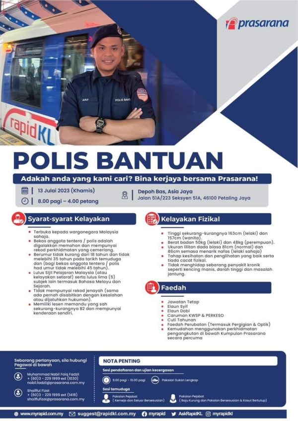 Iklan Jawatan Prasarana Malaysia Berhad Like serta Ikut Facebook Kami, follow Chanel WhatsApp Jawatan Kosong & Telegram Portal SPA9 untuk capaian pantas kekosongan jawatan daripada kami sekarang.