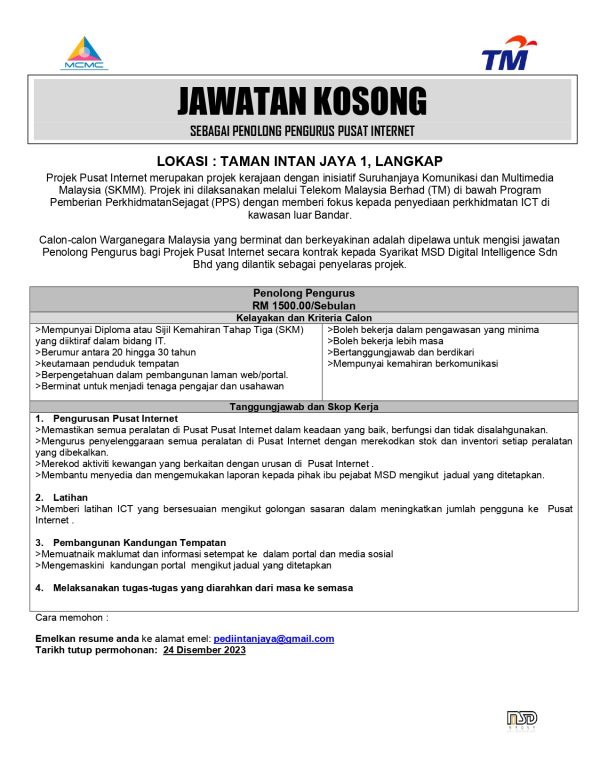 Iklan Jawatan Pusat Ekonomi Digital (PEDi) Like serta Ikut Facebook Kami, follow Chanel WhatsApp Jawatan Kosong & Telegram Portal SPA9 untuk capaian pantas kekosongan jawatan daripada kami sekarang.