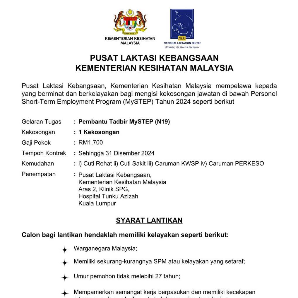 Iklan Jawatan Pusat Laktasi Kebangsaan Like serta Ikut Facebook Kami, follow Chanel WhatsApp Jawatan Kosong & Telegram Portal SPA9 untuk capaian pantas kekosongan jawatan daripada kami sekarang.