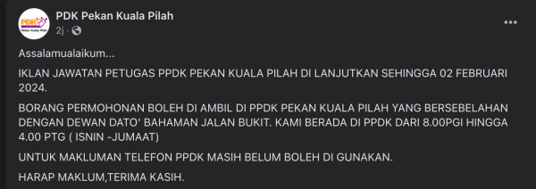 Iklan Jawatan Pusat Pemulihan Dalam Komuniti (PDK) Pekan Kuala Pilah Like serta Ikut Facebook Kami, follow Chanel WhatsApp Jawatan Kosong & Telegram Portal SPA9 untuk capaian pantas kekosongan jawatan daripada kami sekarang.